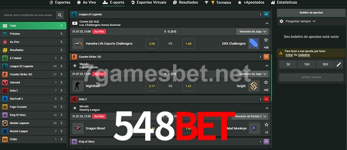 O 548BET oferece uma grande seleção de opções de apostas em e-sports com probabilidades competitivas